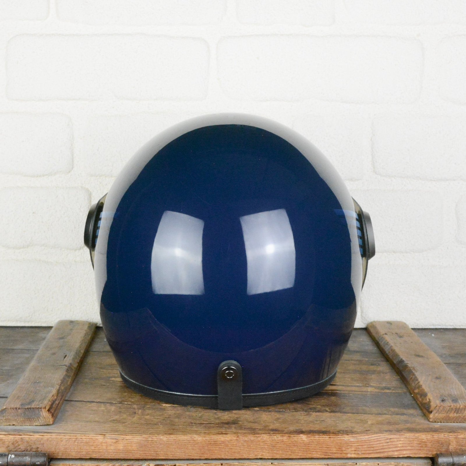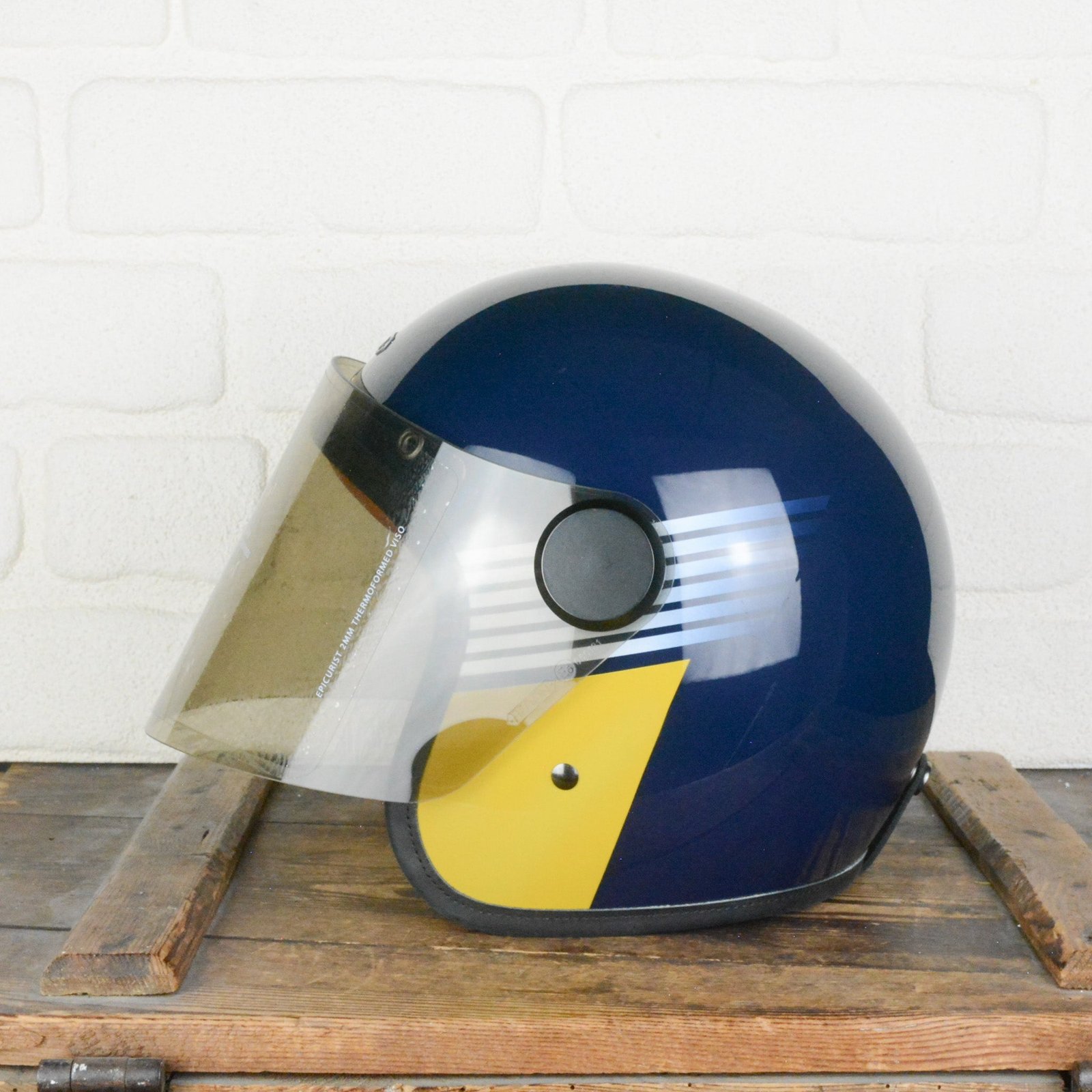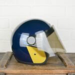 - Midnight blue base with yellow and white masked stripes painted shell using automotive paints, gloss finish
